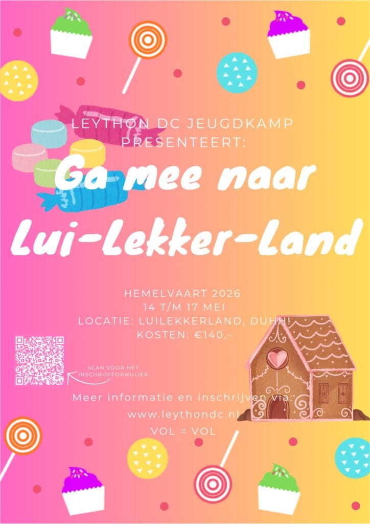 PS: Moet jij vrijdag 15 mei naar school maar wil je toch graag mee op kamp? Neem dan contact op met de kampleiding via kamp@leythondc.nl om de mogelijkheden te bespreken.